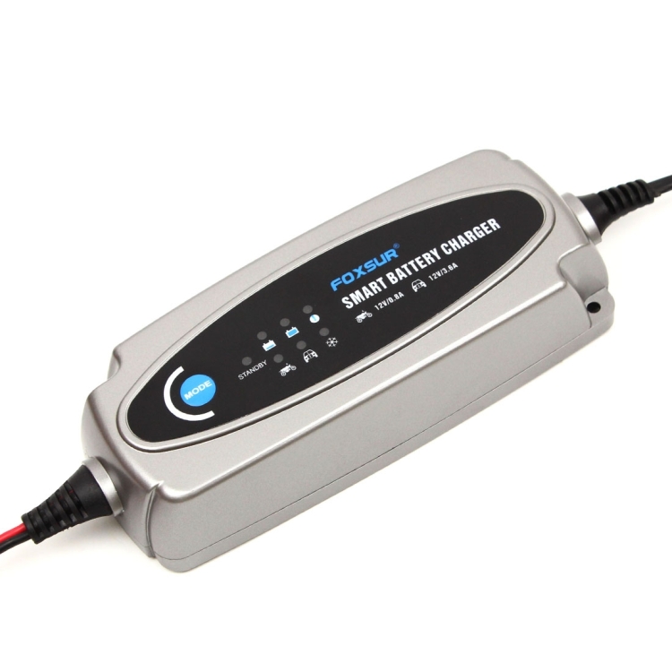 FOXSUR 0.8A / 3.6A 12V 5 Stage Charging Battery Charger for Car Motorcycle, US Plug