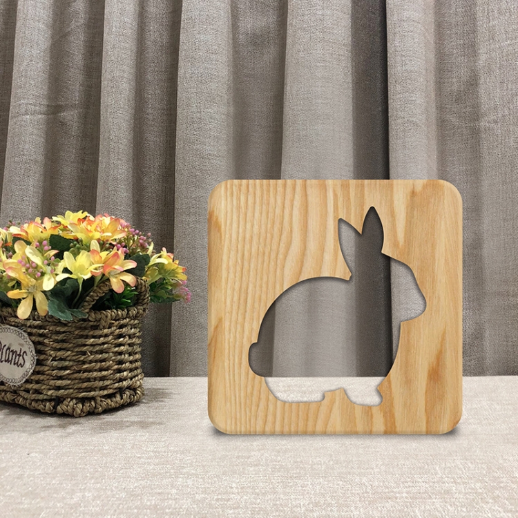 FS-T2104W 3D Wooden Carving Rabbit Table Lamp USB Night Light Crafts