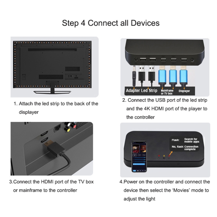 10. Packing list: light strip x1, adapter x1, controller x1, connection cable x1