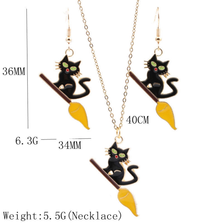Funny Halloween Cat Exaggerated Earrings Necklace Assembly
