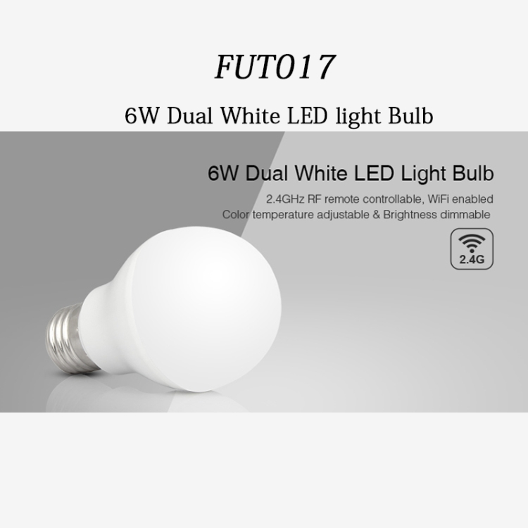 FUT017 6W Dual White LED Bulb 2.4GHZ RF Controllable Wifi Enabled CCT Adjustable Brightness Dimmable