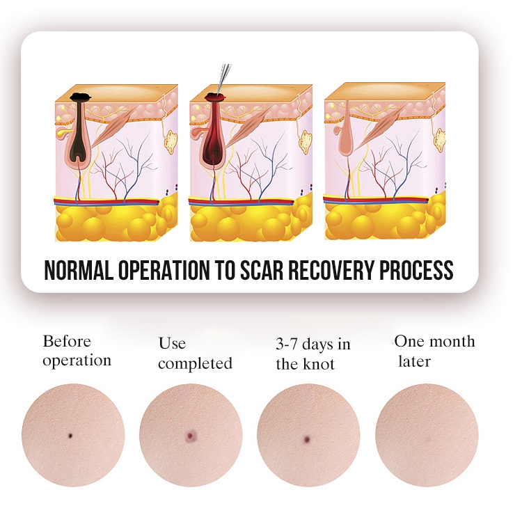 6. Electric ion carbonization skin cleansing, using the plasma thermal effect, when the pen tip touches the skin, high-temperature electric ions are generated to instantly carbonize the moles on the skin to achieve the effect of skin cleansing