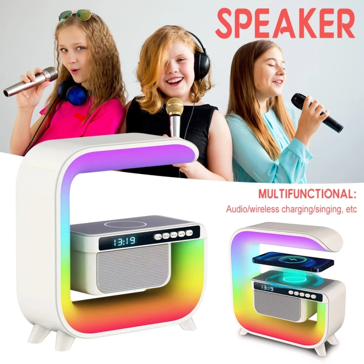 G3 5 In 1 Wireless Charger Bluetooth Speaker Clock With RGB LED Atmosphere Smart Light
