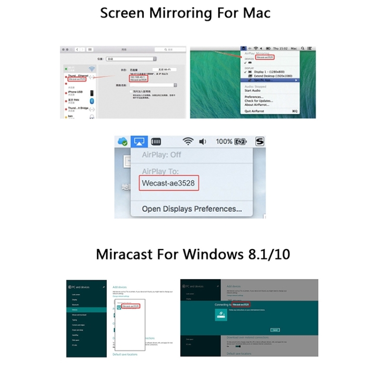 6. Wi-Fi ECMirror(Miracast): Support