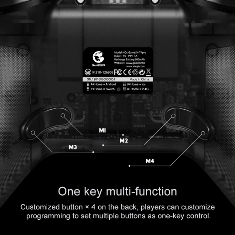 6. 4 custom keys on its back, one-key combo can be set by custom programming.