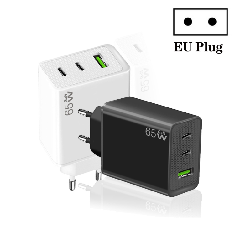 GaN PD65W Type-C x 2 + USB3.0 Laptop Adapter for Apple MacBook Series ,EU Plug, Type-C x 2 + USB3.0