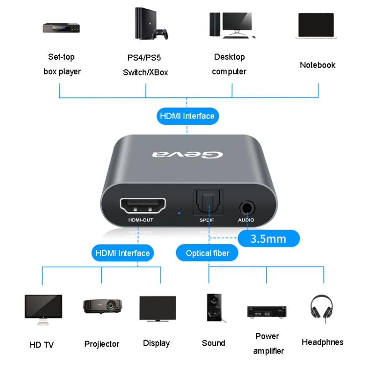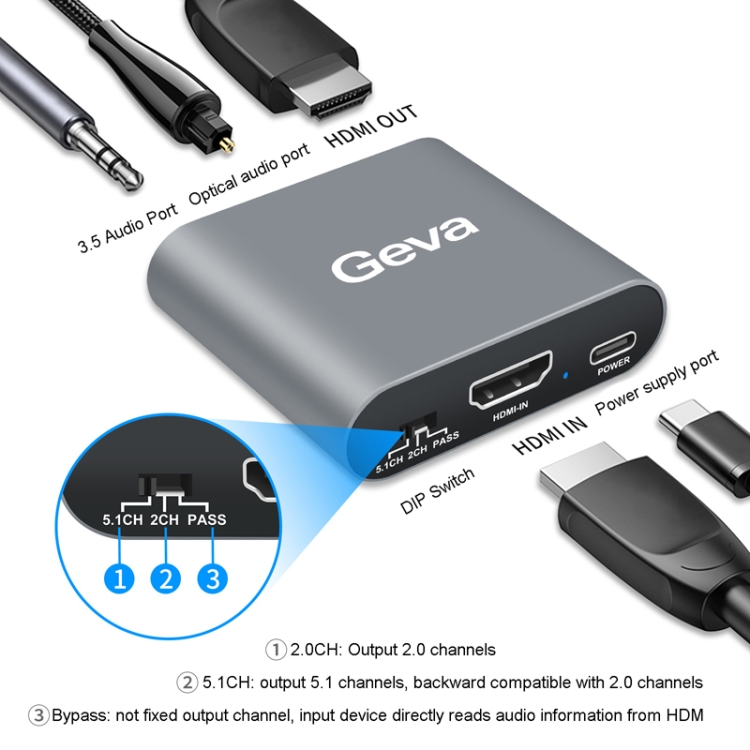 Geva SEP02 4K HDMI Audio Splitter 5.1 Optical Converter