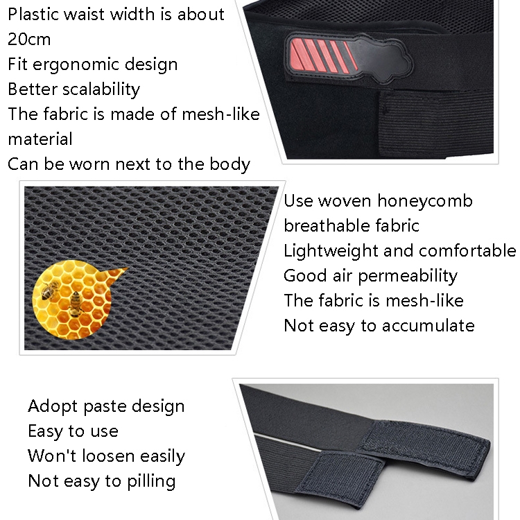 1. The plastic waistband is about 20cm wide, fits ergonomic design, and has good flexibility. The fabric is made of mesh-like material and can be worn next to the body