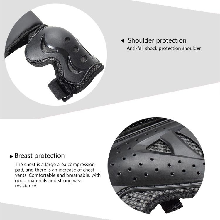 1. Chest protection, the chest is a large-area compression pad, with ventilation holes on the chest, comfortable and breathable, and strong abrasion resistance