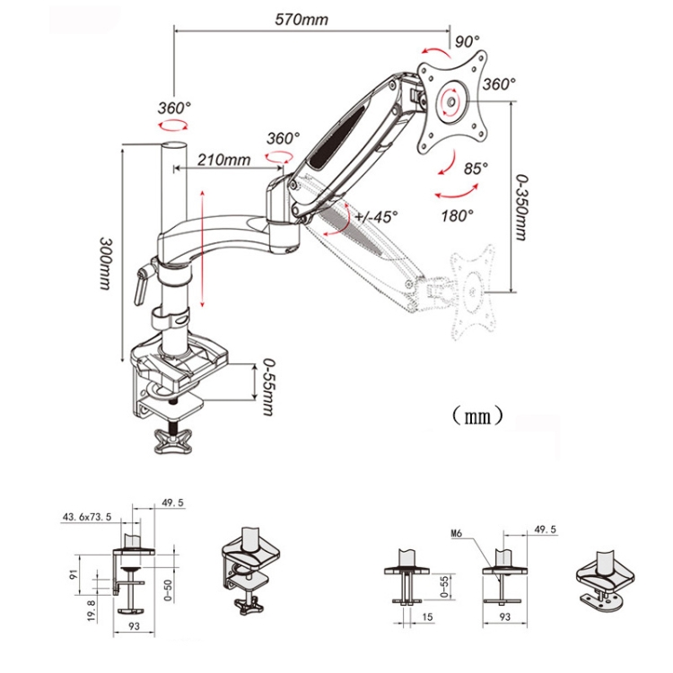 Gibbon Mounts Desktop Lifting Rotating Computer Monitor Stand, Specification