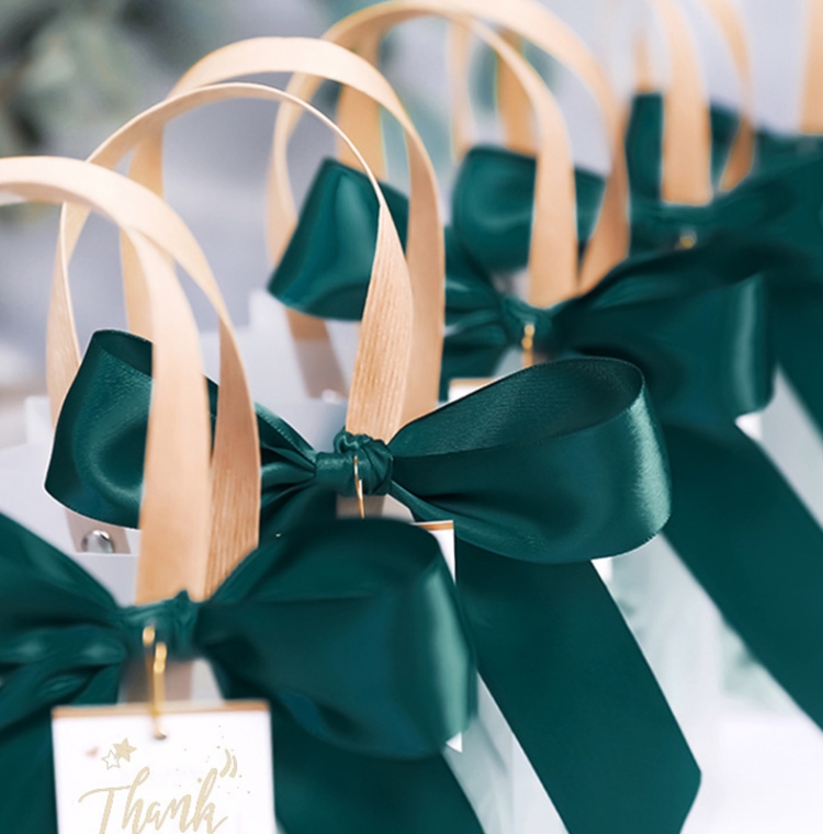 Gift Bag Transparent Packaging Bag, Green Ribbon+Hanging Tag+Lafite Grass