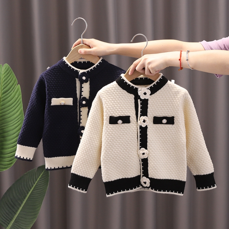 Girls Cardigan Autumn Winter Knitted Sweater Camellia Jacket, 73cm, 80cm, 90cm, 100cm, 110cm, 120cm