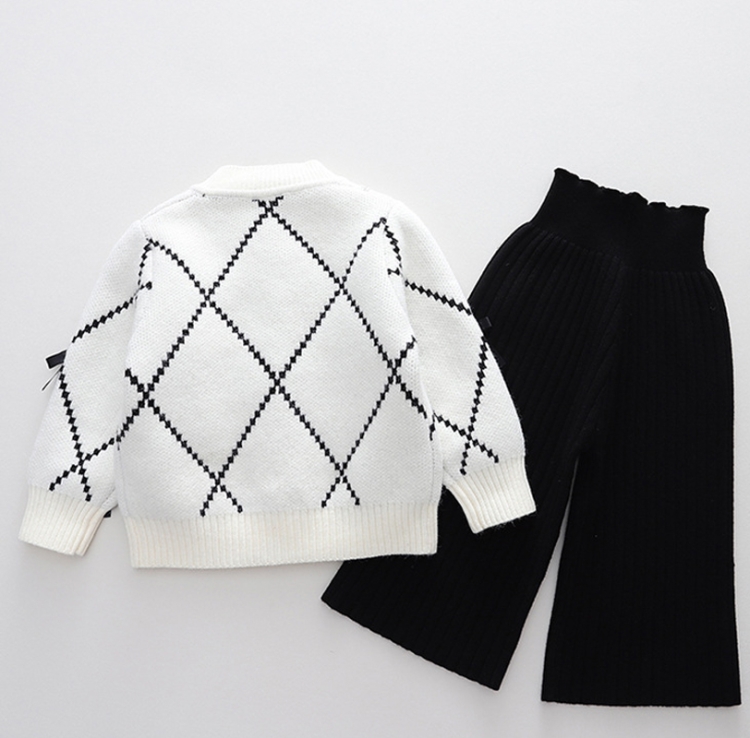Girls Cardigan Sweater + Wide-Legged Pants Set Autumn And Winter Knitting Two-Piece Kit, 90cm, 100cm, 110cm, 120cm, 130cm
