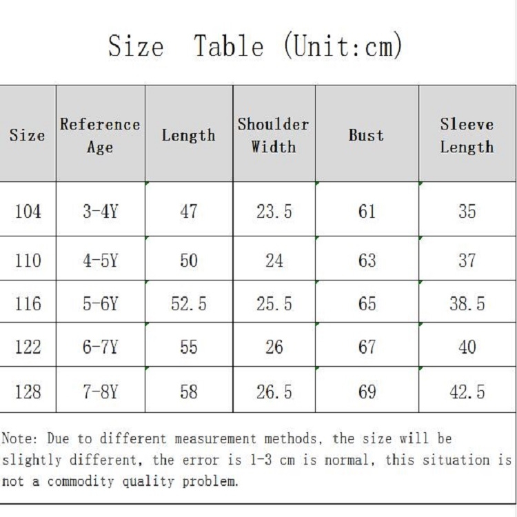 | Option | 104cm, 110cm, 116cm, 122cm, 128cm |
