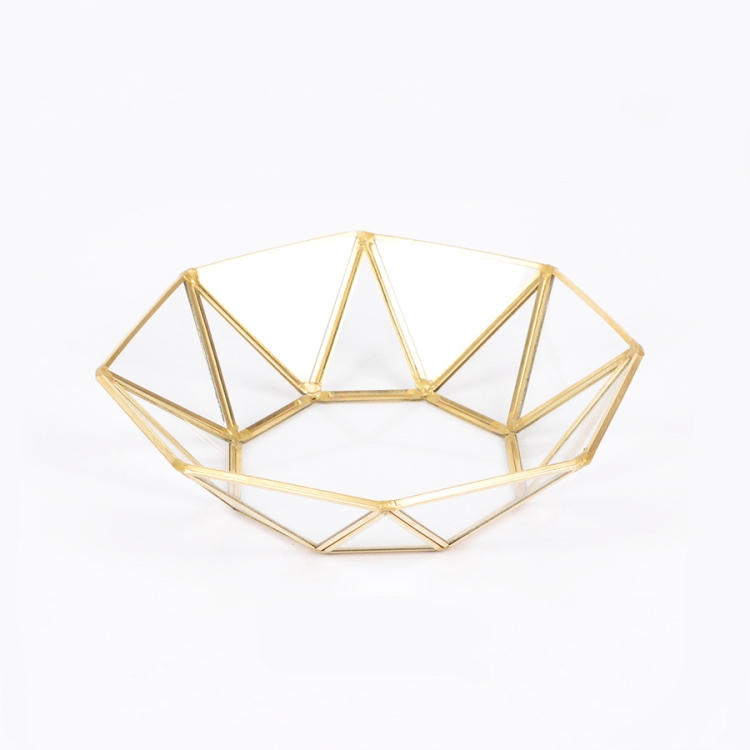 Glass Storage Tray Golden Retro Polygon Mirror Tray Brass Desktop Cosmetics Storage Tray