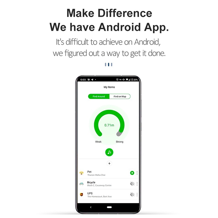 1. When the device is connected to the cell phone APP Bluetooth, use the search function of the APP to make the anti-loss device sound and find the item.