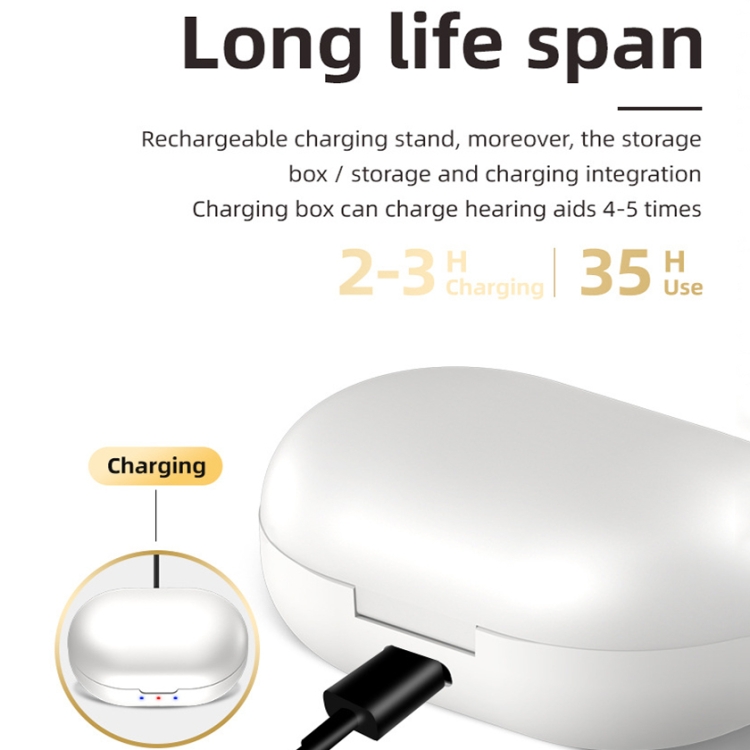 2. Battery capacity: hearing aid: 30mAh, charging case: 300mAh