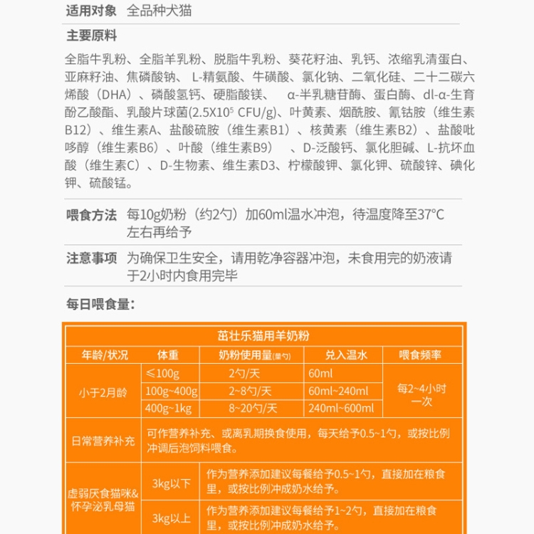Goat Milk Powder For Cats Pet Supplements