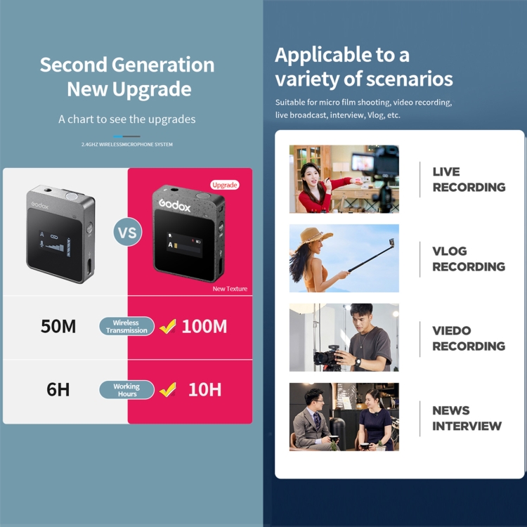 Godox MoveLink II M1 Wireless Lavalier Microphone System with Transmitters and Receiver for DSLR Cameras and Camcorders