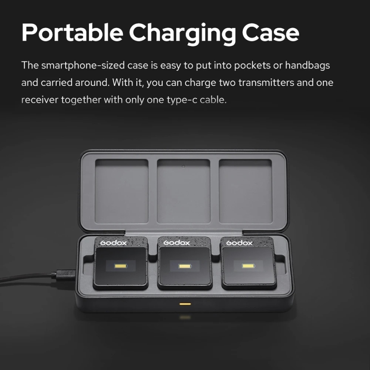 6. Portable Charging Case: The smartphone-sized case is easy to put into pockets or handbags and carried around. With it, you can charge two transmitters and one receiver together with only one type-c cable.