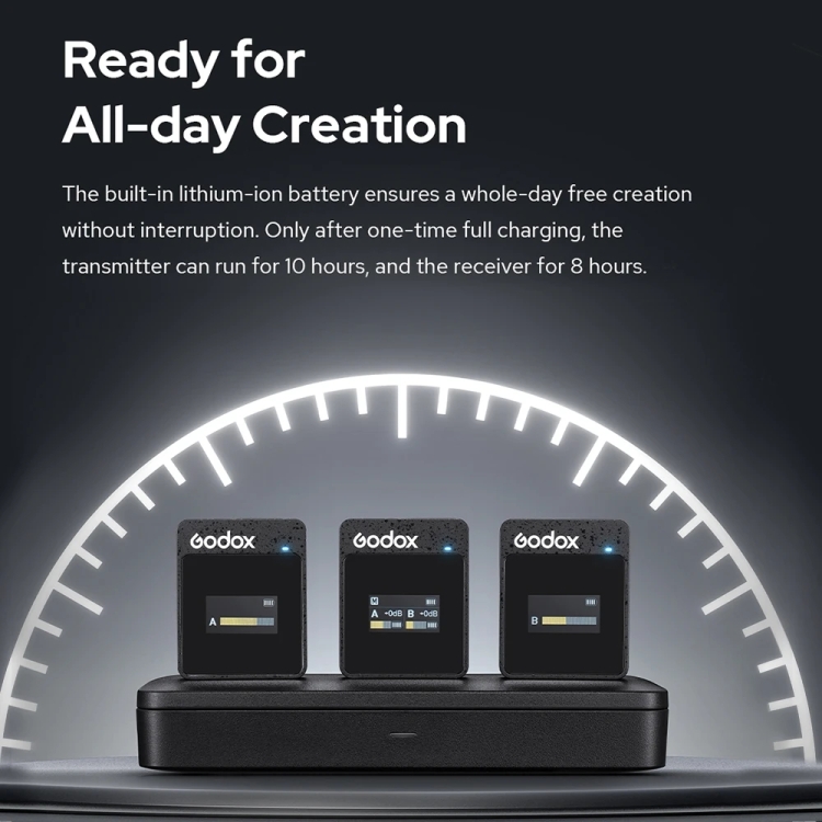 7. Ready for All-day Creation: The built-in lithium-ion battery ensures a whole-day free creation without interruption. Only after one-time full charging, the transmitter can run for 10 hours, and the receiver for 8 hours.