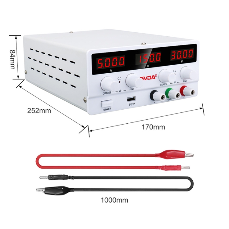 Packing list: 1x DC power supply, 1x power cord, 2x alligator clip wire