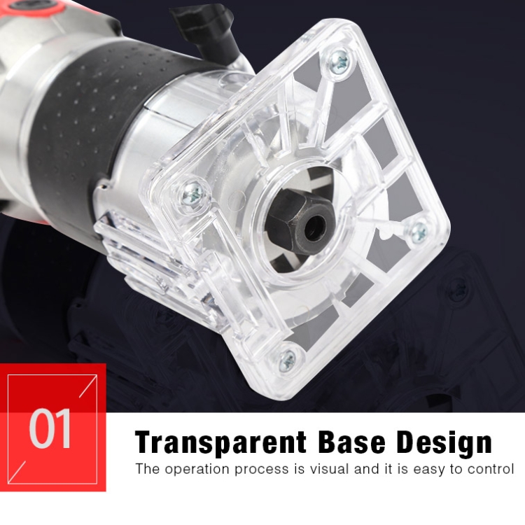 6. All-copper motor, aluminum body casing, durable, waterproof and dustproof; plastic coated handle, comfortable to hold and easy to operate. Transparent base, clear and visible operation, precise control; stainless steel chuck, tighter clamping and convenient replacement; one-touch toggle switch, easy to open and close, and easy replacement of external carbon brush