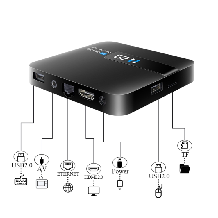 H20 4K Smart TV BOX Android 10.0 Media Player with Remote Control, Quad Core RK3228A, RAM: 1GB, ROM: 8GB, 2.4GHz WiFi, AU Plug