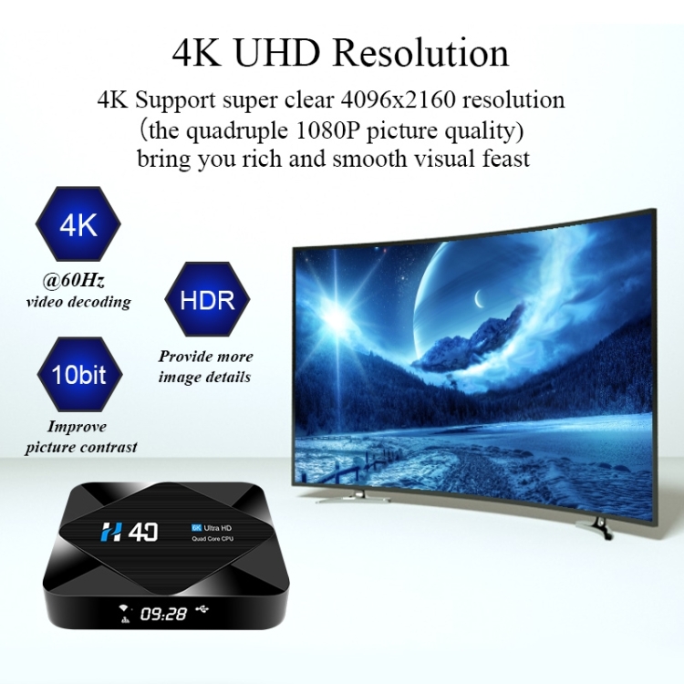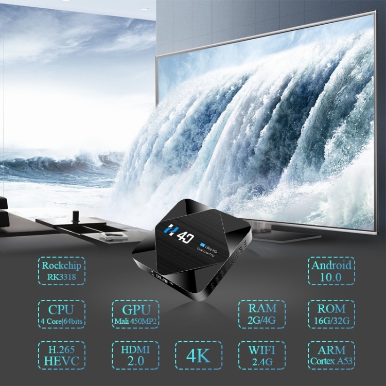 H40 4K Ultra HD Smart TV BOX Android 10.0 Media Player with Remote Control, Quad-core, RAM: 4GB, ROM: 32GB