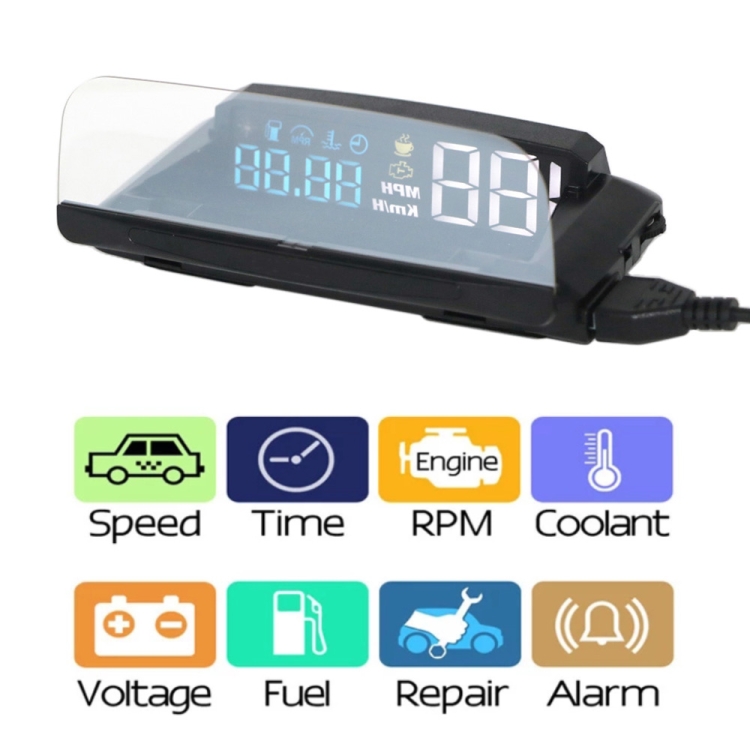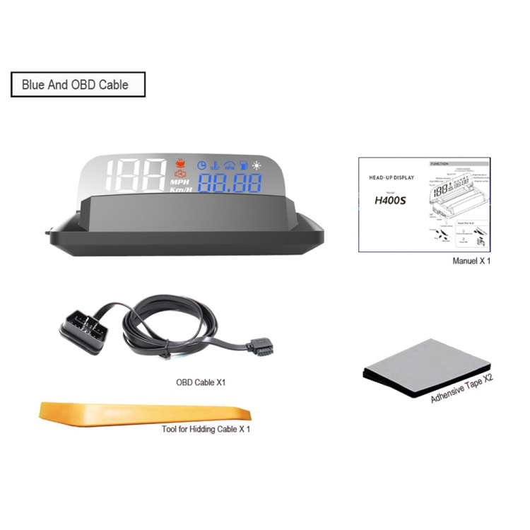 H400S Car 3.7 inch OBD Mode HUD Head-up Display Support Engine Failure Alarm / Water Temperature Alarm Voltage Alarm