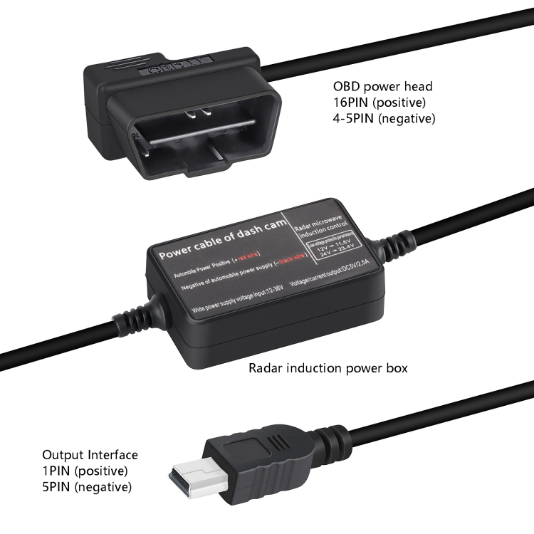 H525 Driving Recorder OBD Radar Line Microwave Induction Antihyline With Low Voltage Protection Car Power Cable