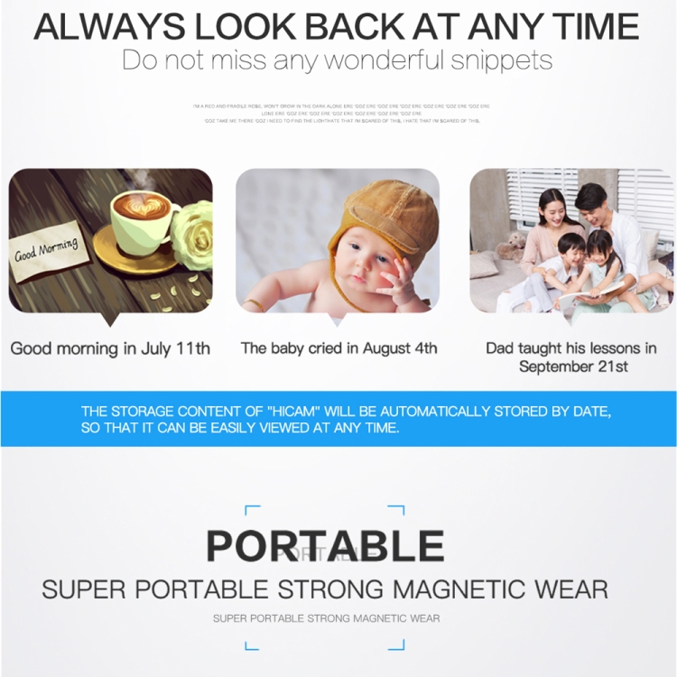 1. Smaller micro-monitoring strong magnetic adsorption, intelligent wear, suitable for personal, home, business super security monitoring, law enforcement, driving, cycling records.