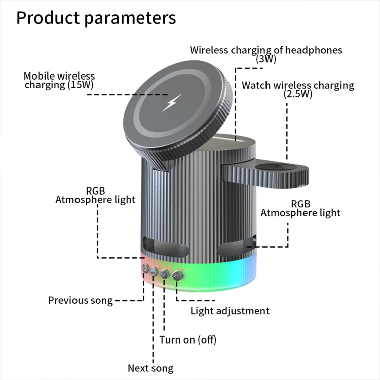 H61 15W 4 in 1 Multifunctional Foldable Wireless Charger Bluetooth Speaker