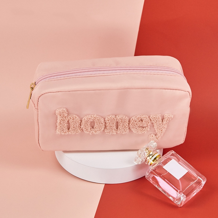 H6572 Letter Embroidered Nylon Travel Toiletry Bag Portable Cosmetic Bag