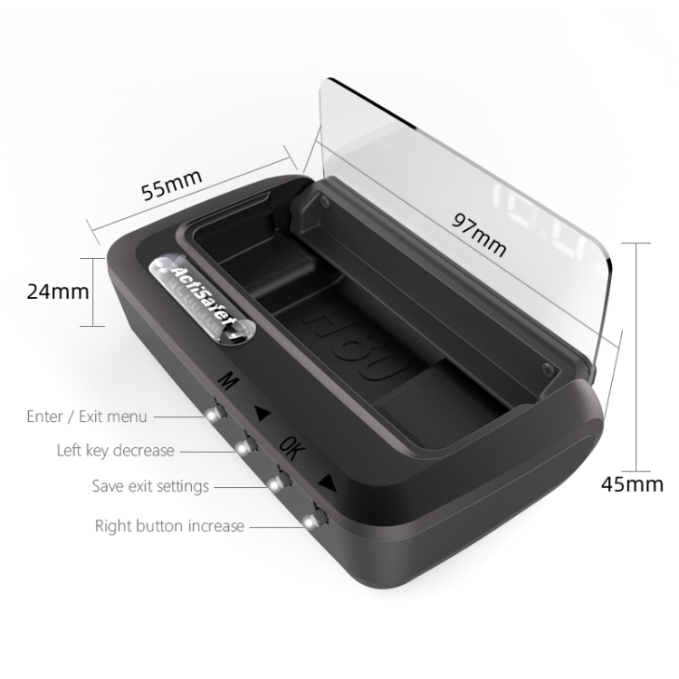 H80 Car 3.2 inch OBD HUD Head-up Display Support Engine Failure Alarm / Water Temperature Alarm Voltage Alarm
