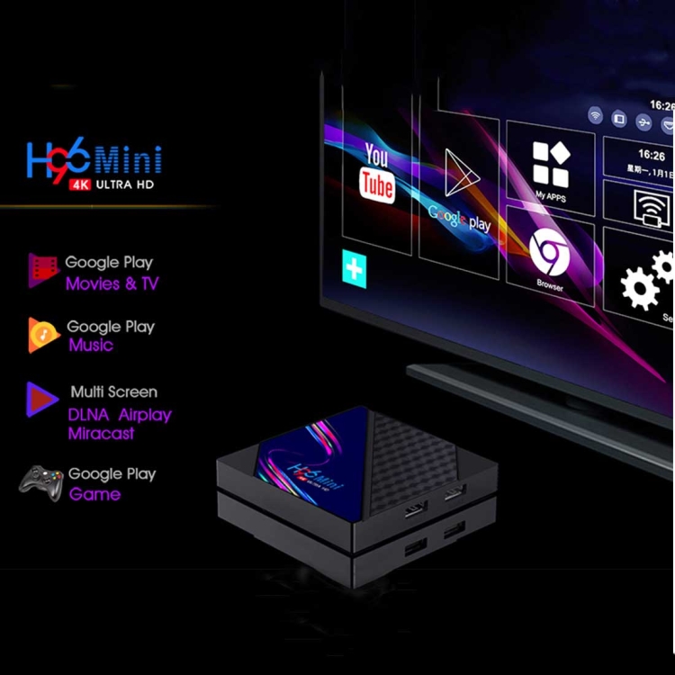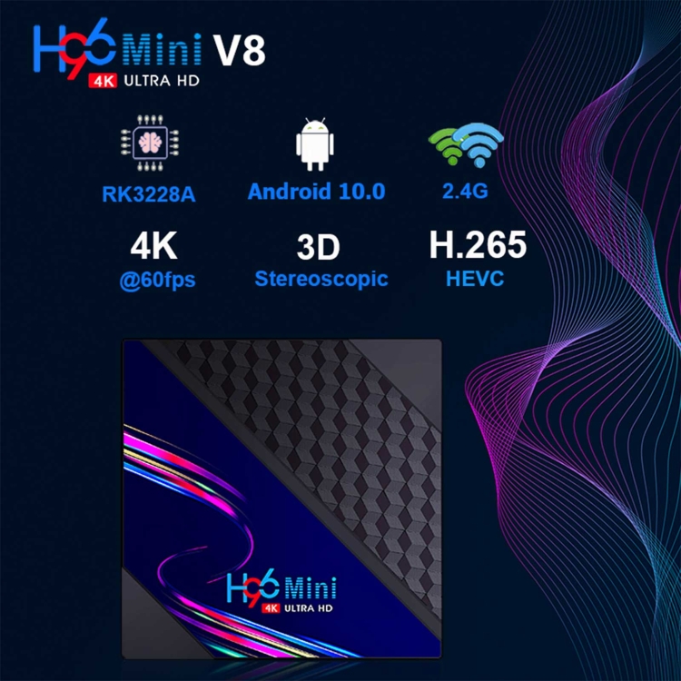 H96 Mini V8 4K Smart TV Box with Remote Control, Android 10.0, RK3228A Quad-core Cortex-A7, 2GB+16GB, Built-in TikTok, Support DLNA / HDMI / USBx2 / 2.4G WIFI