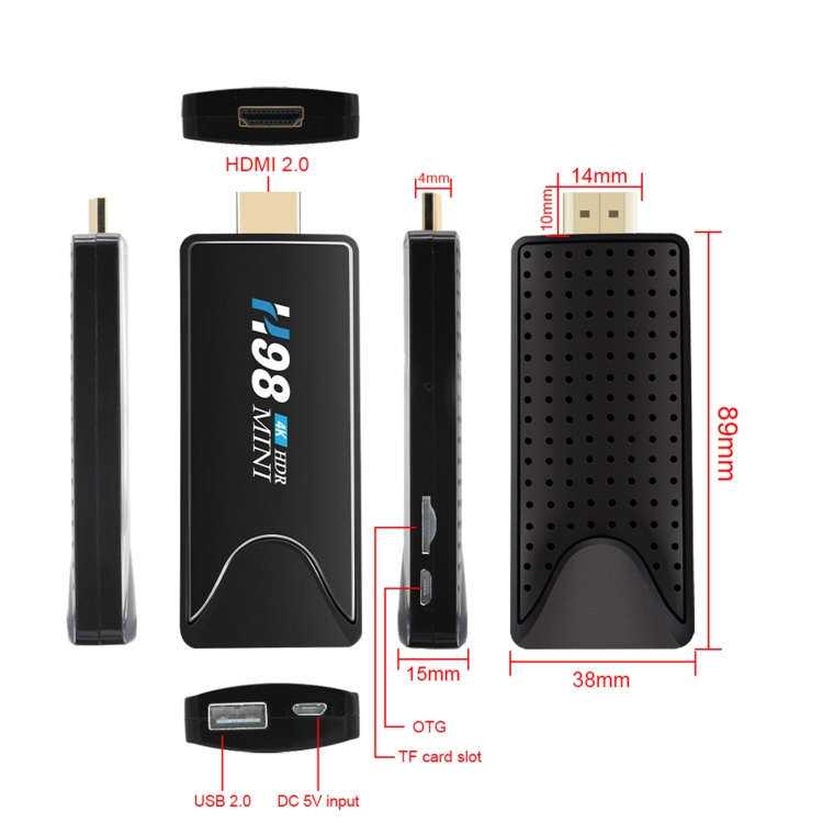 H98 Mini 4K Dongle Smart TV BOX Android 10 Media Player with Remote Control, Allwinner H313 Quad-core ARM Cortex-A53, RAM: 2GB, ROM: 16GB, Support WiFi, Bluetooth, OTG, EU Plug