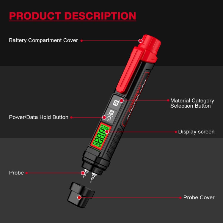 3. Automatically matches the appropriate backlight color according to the moisture percentage, roughly dividing the moisture content into three levels