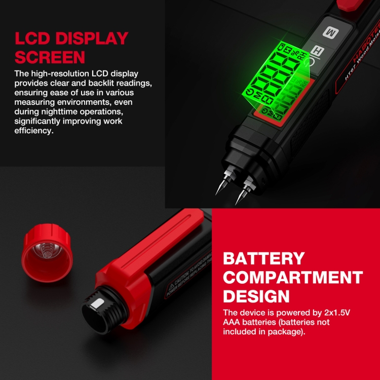7. The high-resolution LCD display provides clear backlight readings, ensuring easy use in various measurement environments, and significantly improves work efficiency even when operated at night