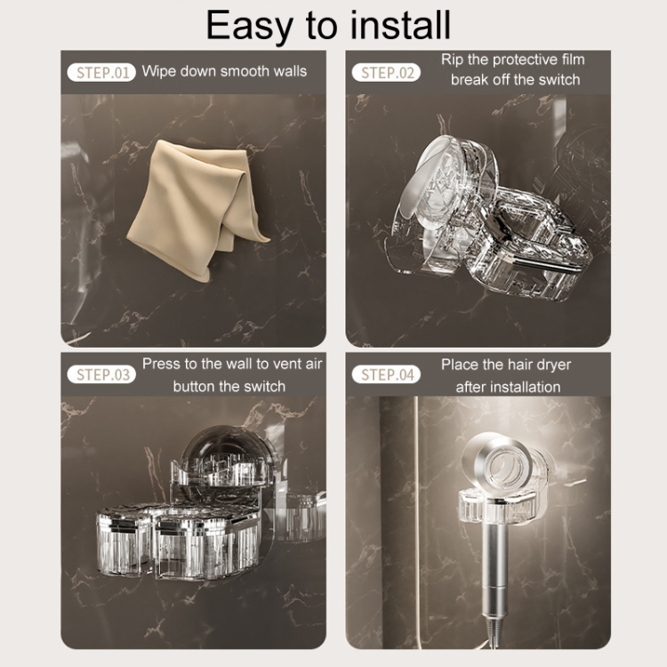 Hair Dryer Storage Rack Bathroom Wall Mounted Suction Cup Swivel Organizing Bracket