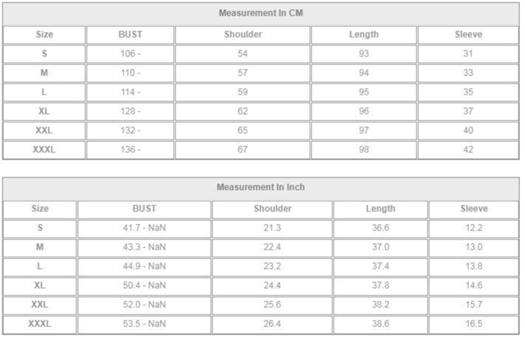 | Option | XL, XXL |