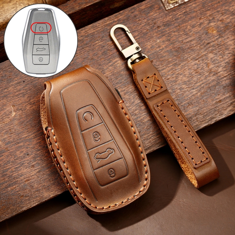 Hallmo Car Cowhide Leather Key Protective Cover Key Case for Geely Emgrand B Style