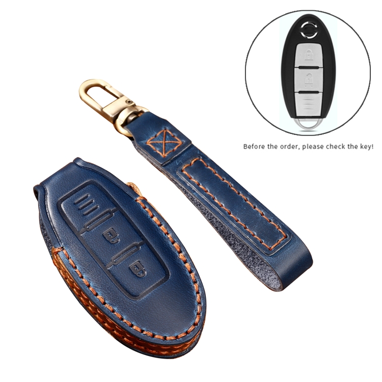 Hallmo Car Cowhide Leather Key Protective Cover Key Case for Nissan Sylphy 2-button