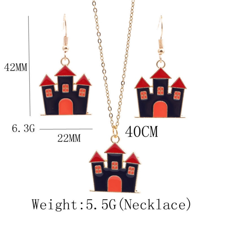 Halloween Jewelry Personality Alloy Electroplating Castle Earrings Necklace