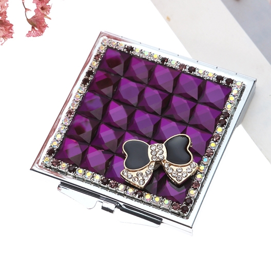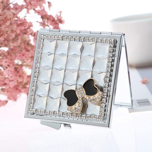 Hand-made Diamond Mini Folding Cosmetic Mirror Portable Mirror Double-side Gem Bow