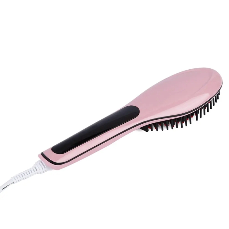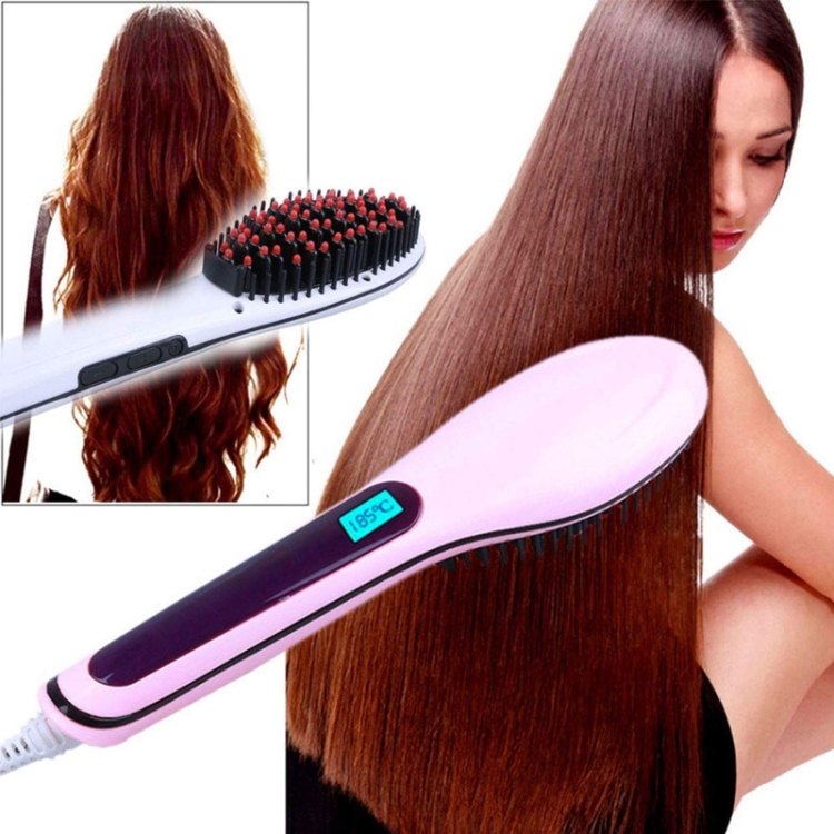 Handheld Innovative Hair Straightener Comb with LCD Temperature Display, EU Plug(Pink)