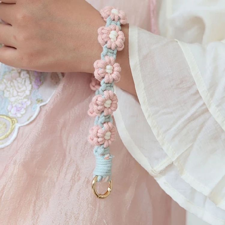Handmade Braided Cell Phone Chain Daisy Flower Braided Rope Keychain Bag Pendant