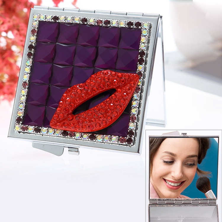 Handmade Diamond Mini Makeup Mirror Portable Double-sided Small Mirror Ruby Red Lips