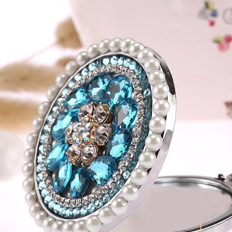 Handmade DIY Gemstone Diamond Mini Folding Cosmetic Mirror Double-sided Mirror