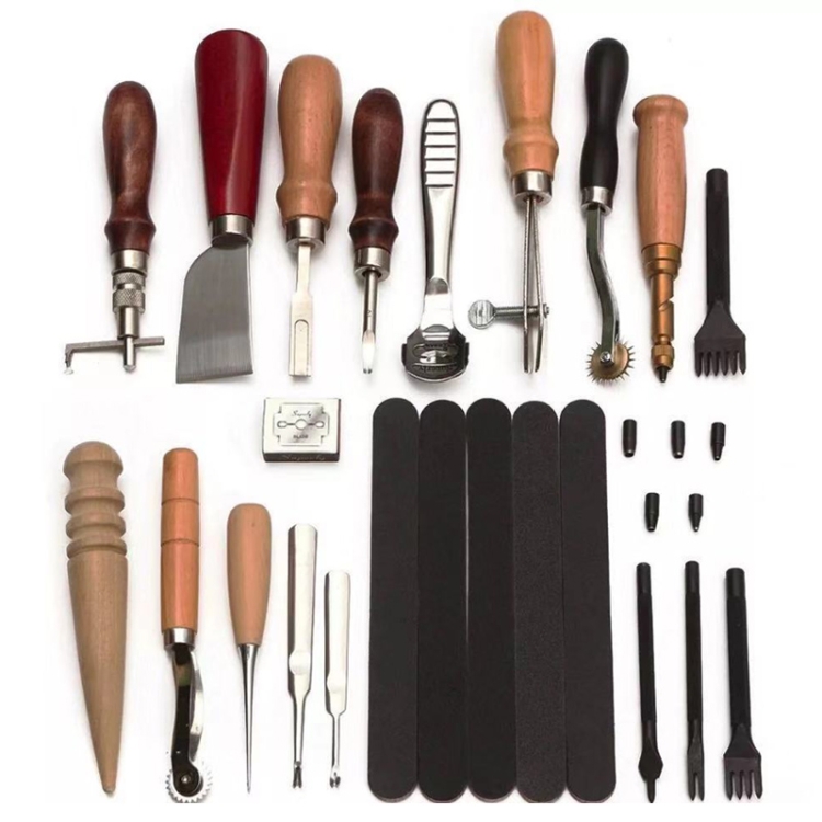 1. Multi-in-one leather processing tool kit-for leather processing stamping, sewing, engraving, decorative gluing, grinding edge coloring and other functions